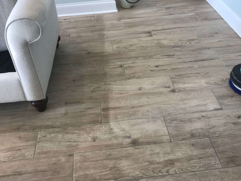 After a tile cleaner has been applied to areas, we scrub all grout and floors to ensure a deep clean, then extract it all back to our machine.